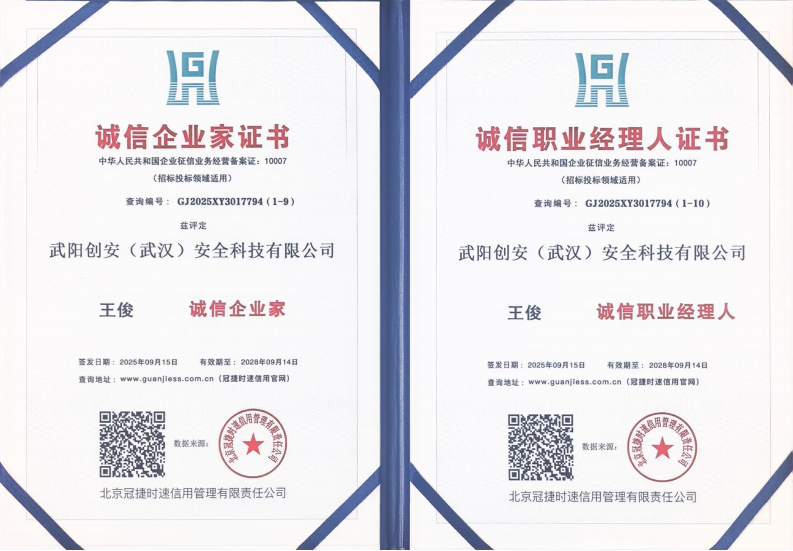 此次获证,不仅是武阳创安深耕安全科技领域、坚守诚信经营理念的有力佐证,更将成为公司拓展市场版图、参与重大项目招投标的 “金字招牌”,为其在政企合作、市场竞争中增添核心竞争力。
