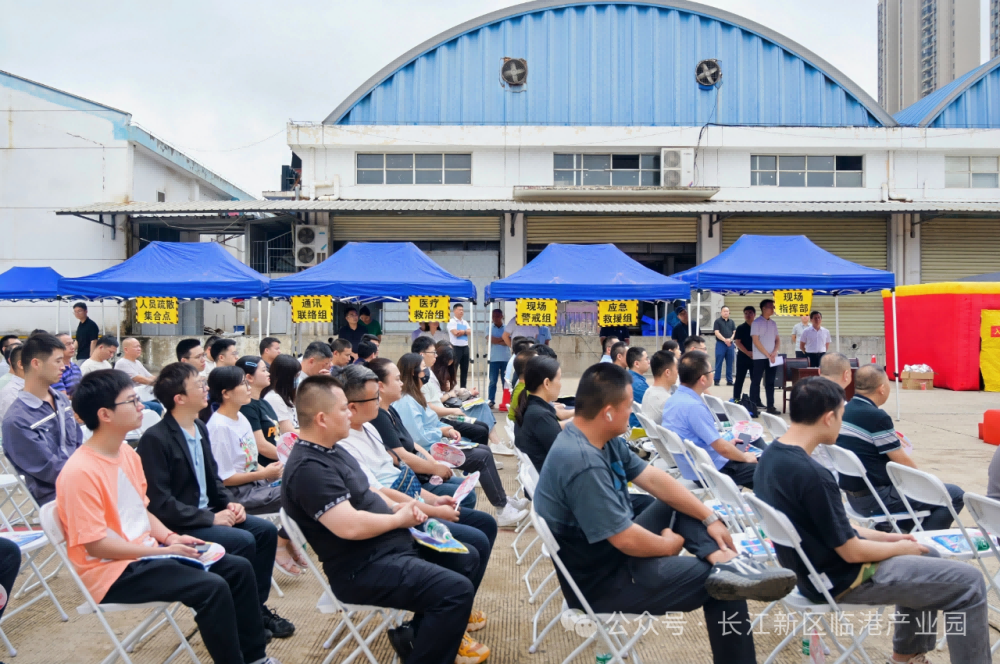 2025年6月24日上午,临港产业园、新区科创局联合举办2025年安全生产月应急演练活动。长江新区管委会二级巡视员涂平晖,临港产业园党委书记、主任周硕,党委副书记、副主任陈雁凌,副主任万建华及新区科创局、新区应急管理局、消防救援大队分管领导,临港产业园辖区企业共计90余人参加活动