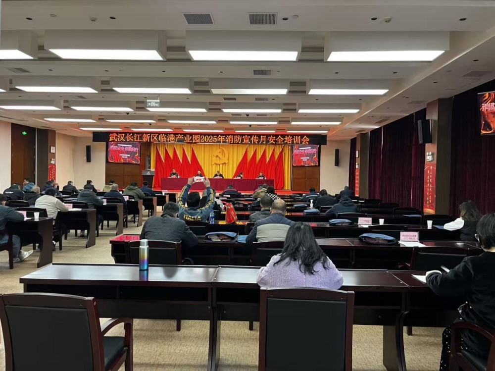 长江新区临港产业园组织了辖区企业负责人和安全人员进行了消防安全工作培训会