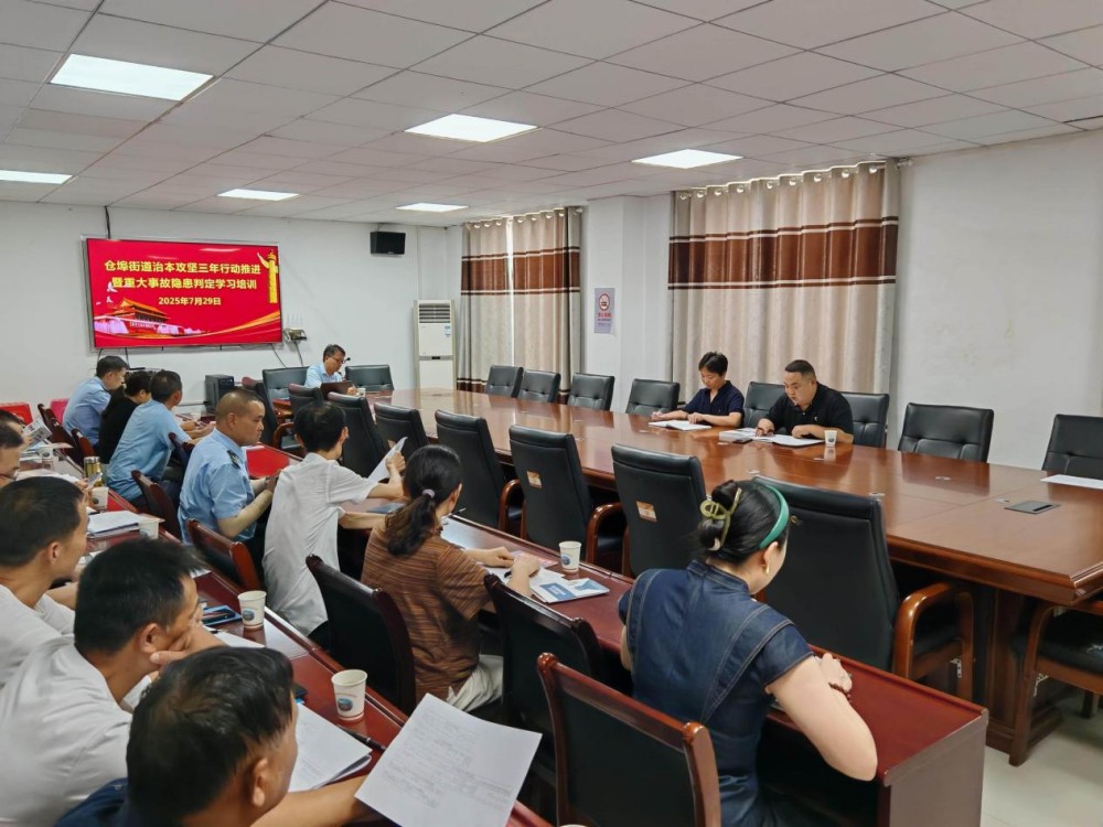 2025 年 7 月 29 日下午 15 时,仓埠街道安办牵头组织各专委会负责人开展安全生产专项培训。培训紧扣治本攻坚三年行动平台业务操作与重大事故隐患判定标准解读两大核心要点,特邀我司安全生产专家邱望林现场授课,助力提升相关人员的业务实操能力与风险研判水平。